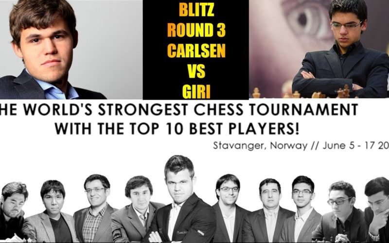#agadmator Magnus Carlsen vs Anish Giri – Altibox Norway Chess Blitz 2017. – Round 3