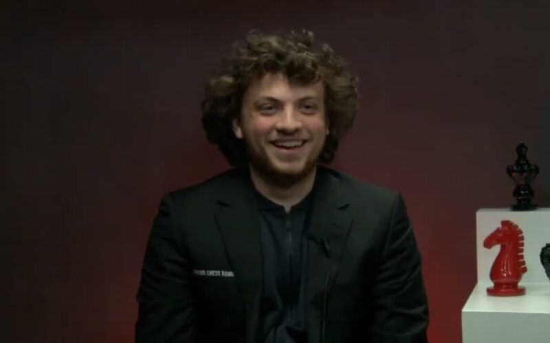 Hans Niemann talks to Alejandro Ramirez after a draw with Nepomniachtchi in the ninth round of the 2022 Sinquefield Cup.