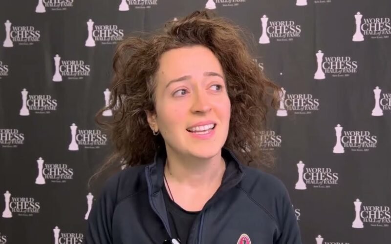 Irina Krush talks to Kostya Kavutskiy after defeating Paikidze 3-1 in the Champions Bracket at The American Cup 2024.