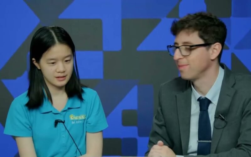 Alice Lee talks to Kostya Kavutskiy after defeating Krush 2.5-0.5 in the grand final of The American Cup 2024.