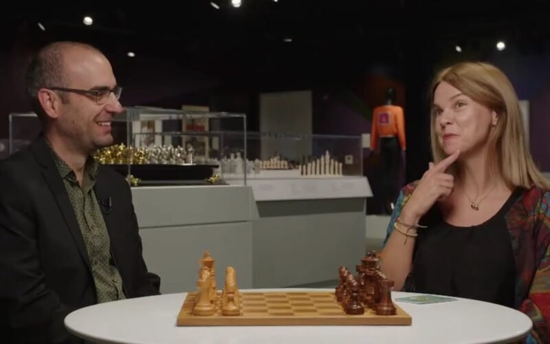 Leinier Dominguez talks to Anastasiya Karlovich after defeating Sevian in Round 9 of the 2024 U.S. Chess Championship.