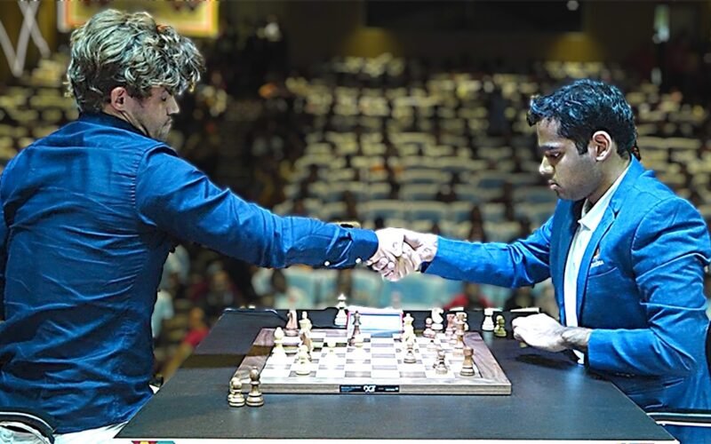 Arjun Eragisi took on Magnus Carlsen in the 8th round of Tata Steel India’s Blitz Section.