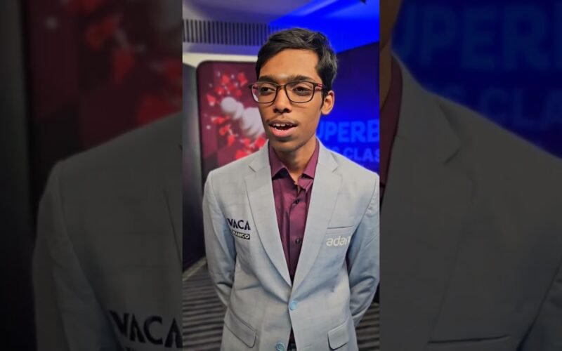 R Praggnanandhaa talks to Anastasiya Karlovich after the midway point of the Superbet Chess Classic 2025. 2025.05.11 https://www.chess.com/events/2025-gct-superbet-romania-chess-classic <a href="https://twitter.com/grandchesstour"