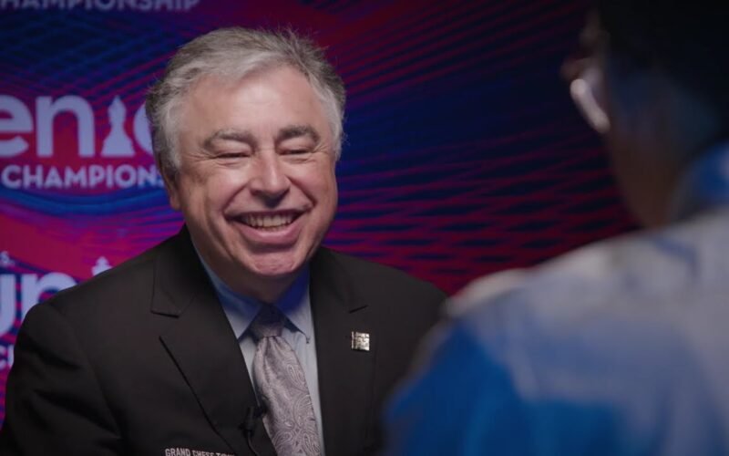 Brew Hardaway talks to Yasser Seirawan before the start of the 2025 U.S. Junior Championship. This aired during Round 4.