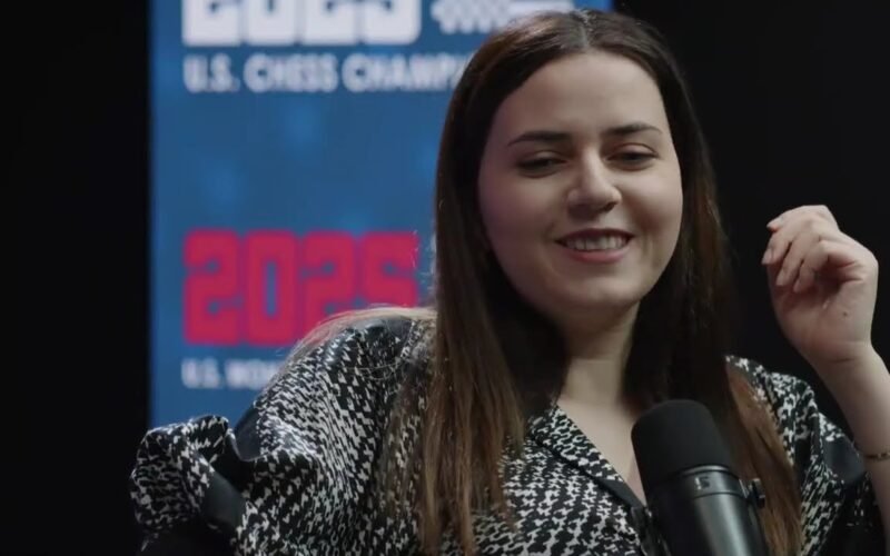 Anna Sargsyan talks to Kostya Kavutskiy after defeating Zatonskih in Round 10 of the 2025 U.S. Women’s Championship.