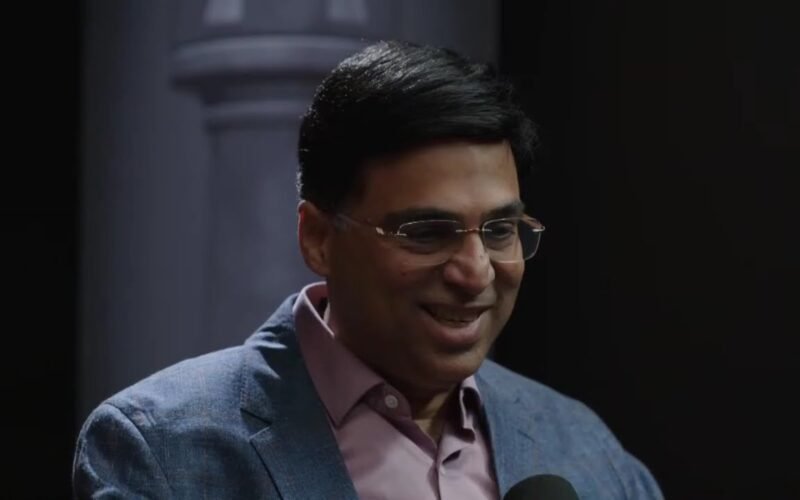 Viswanathan Anand talks to Anastasiya Karlovich after going 0-2-2 against Kasparov on the second day of Clutch Chess: The Legends. 2025.10.09 <a