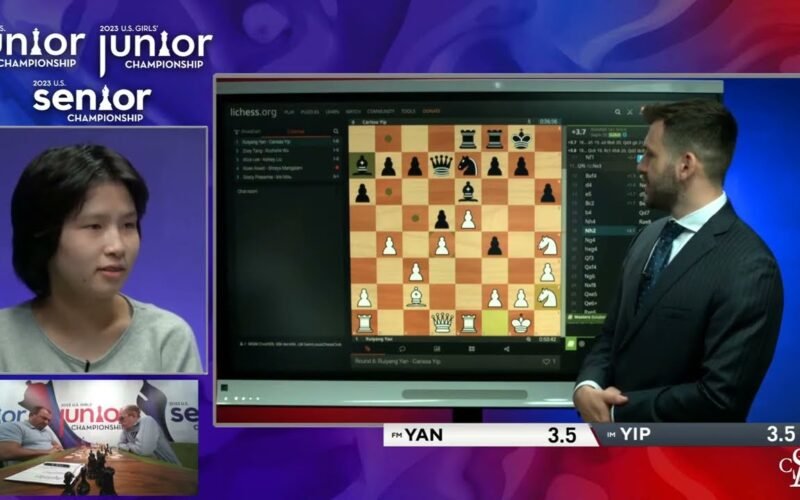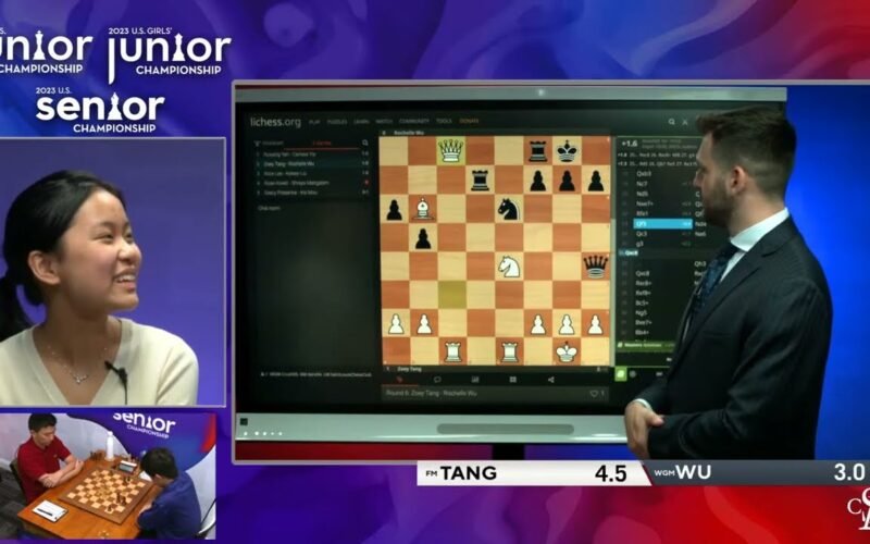 Rose Atwell talks to Cristian Chirila after a draw with Mangalam in the sixth round of the 2023 U.S. Girls’
