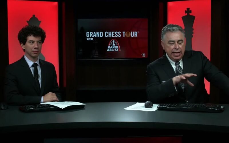 Grandmaster Maurice Ashley talks to Wesley So after Day 1 of the 2021 Saint Louis Rapid & Blitz. 2021.08.11 GrandChessTour.org KasparovChess.com