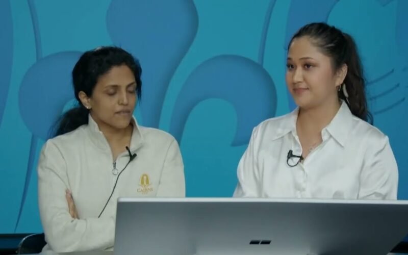 Harika Dronavalli talks to Begim Tokhirjonova after defeating Kosteniuk in the second round of the 2024 Cairns Cup. 2024.06.14
