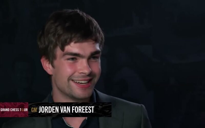 Jorden van Foreest talks to Alejandro Ramirez after his second rapid round victory over Leinier Dominguez during the 2022 SuperUnited