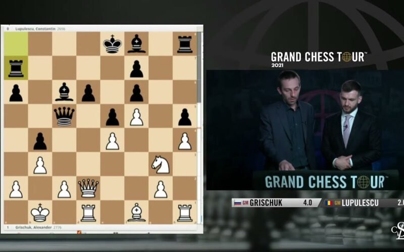 Grandmaster Cristian Chirila interviews Alexander Grischuk during the sixth round of the 2021 Superbet Chess Classic. 2021.06.11 GrandChessTour.org
