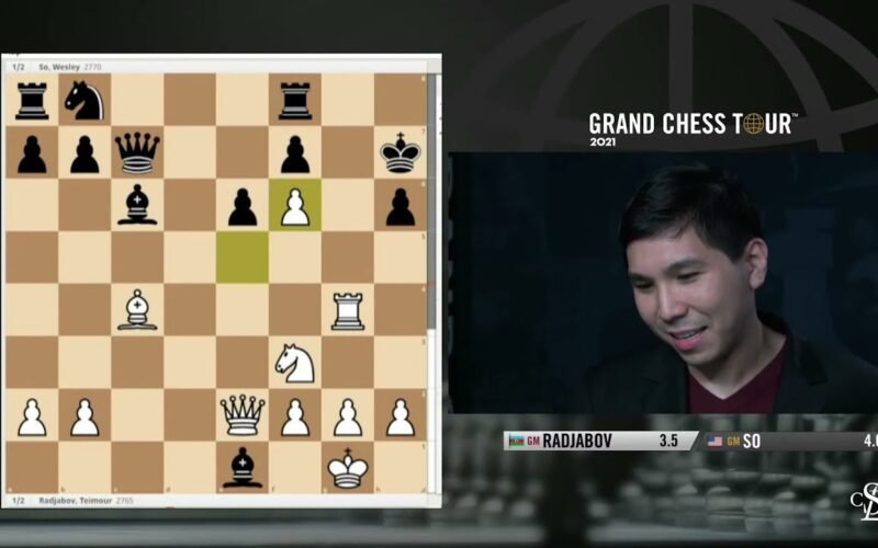 Grandmaster Cristian Chirila interviews Wesley So during the seventh round of the 2021 Superbet Chess Classic. 2021.06.12 GrandChessTour.org