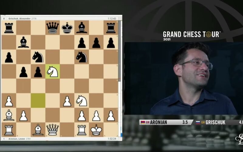 Grandmaster Cristian Chirila interviews Levon Aronian during the seventh round of the 2021 Superbet Chess Classic. 2021.06.12 GrandChessTour.org